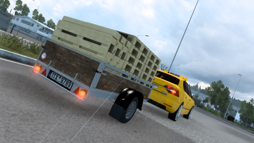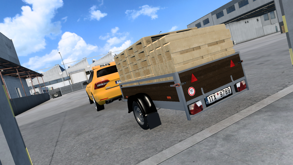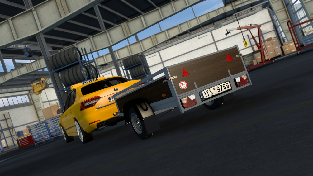 Customizable parts in trailer dealer or service station, own cargo (pallets - appears when loaded).