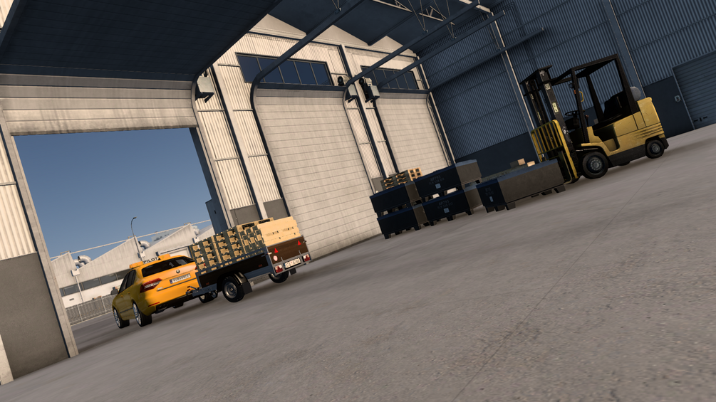 Customizable parts in trailer dealer or service station, own cargo (pallets - appears when loaded).